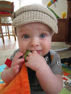 Sweet hairdo! You can see Austin's bottom molars in this picture! They came in about 2 months ago and he has been eating SOOOO much more food. as in, so much more variety
